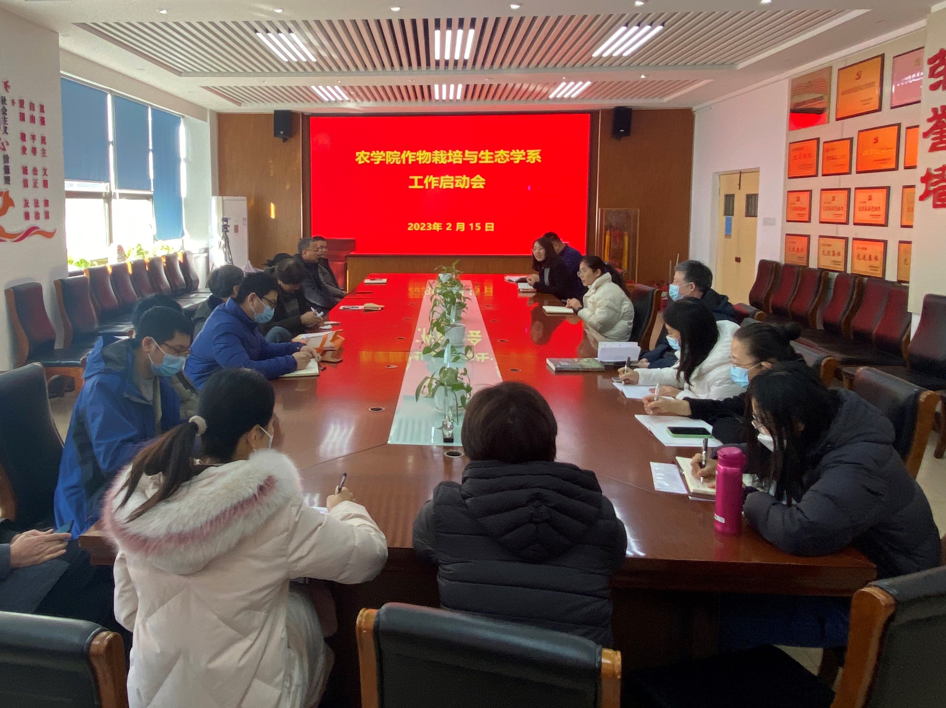 2月15日下午,beat365在线唯一官网作物栽培与生态学系工作启动会在生物楼N206召开。会议由系主任邹晓霞主持,作物栽培与生态学系全体教师参加会议。