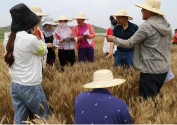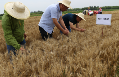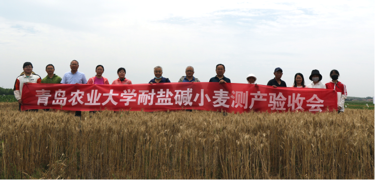 试验地位于青岛市即墨区金口镇盐碱地示范区(盐分含量0.3%-0.4%)。验收专家组通过面积测量、亩穗数统计、穗粒数统计等验收程序,并结合前三年平均千粒重,八五折计算亩产。结果显示,三个耐盐碱小麦新品系青麦133-3、QM16082、QM17309在中度盐碱地亩产分别达到343.0kg、358.7kg、354.1Kg。此次示范区小麦夏收工作结束。