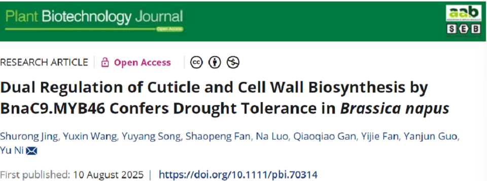 近年来,气候变化以及盐碱、干旱、低温等非生物逆境严重制约了我国冬季油料作物——油菜的稳产高产。提升油菜抗逆性,不仅关系国家粮油安全,也对盐碱地利用与乡村振兴意义重大。beat365在线唯一官网倪郁教授课题组长期致力于“油菜耐旱寒、耐盐碱”的分子调控研究,近期围绕植物外层防护体系——角质层与细胞壁的协同调控取得系列原创性成果,连续发表于 Plant, Cell & Environment、Plant Biotechnology Journal 和 New Phytologist 等国际植物学顶级期刊。