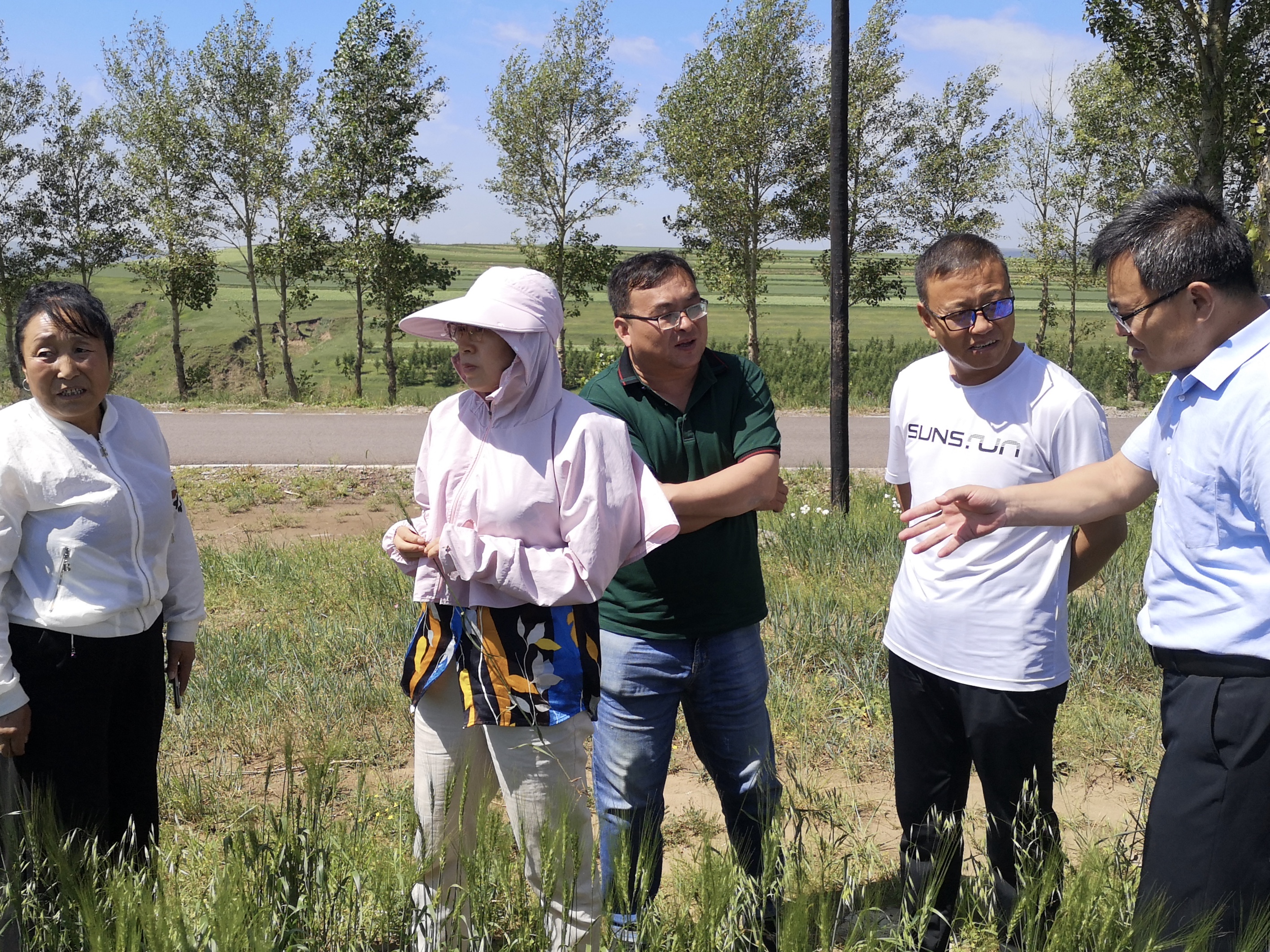 7月22日,beat365在线唯一官网党总支书记张玉梅带领调研组对赤峰市翁牛特旗的小麦种植生产基地进行实地考察。翁牛特旗农业局负责人、基地站长、村委书记陪同考察。