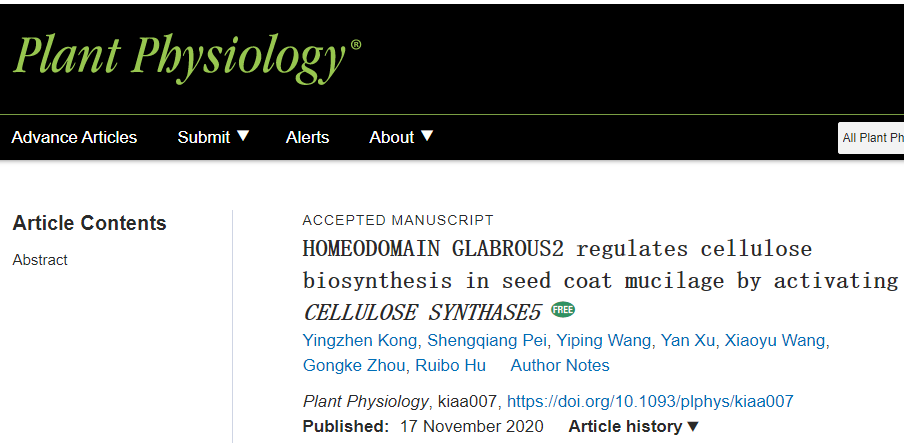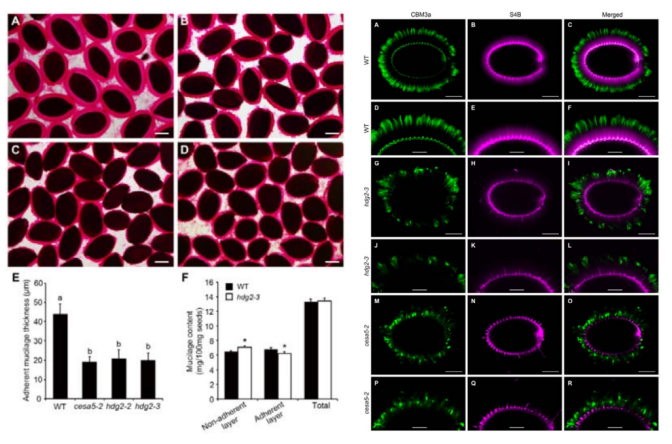 近日,beat365在线唯一官网资源植物与环境工程创新团队成员beat365在线唯一官网孔英珍教授及其合作者首次发现了拟南芥种皮粘液质中调控纤维素合成的转录因子HDG2,揭示了其在种皮粘液质中参与纤维素合成转录调控的分子机制。相关研究内容『HOMEODOMAIN GLABROUS2 regulates cellulose biosynthesis in seed coat mucilage by activating CELLULOSE SYNTHASE5』于11月17日在线发表在《Plant Physiology》(中科院分区:1区,期刊影响因子:7.1)上(原文链接:https://academic.oup.com/plphys/advance-article/doi/10.1093/plphys/kiaa007/5985557)。