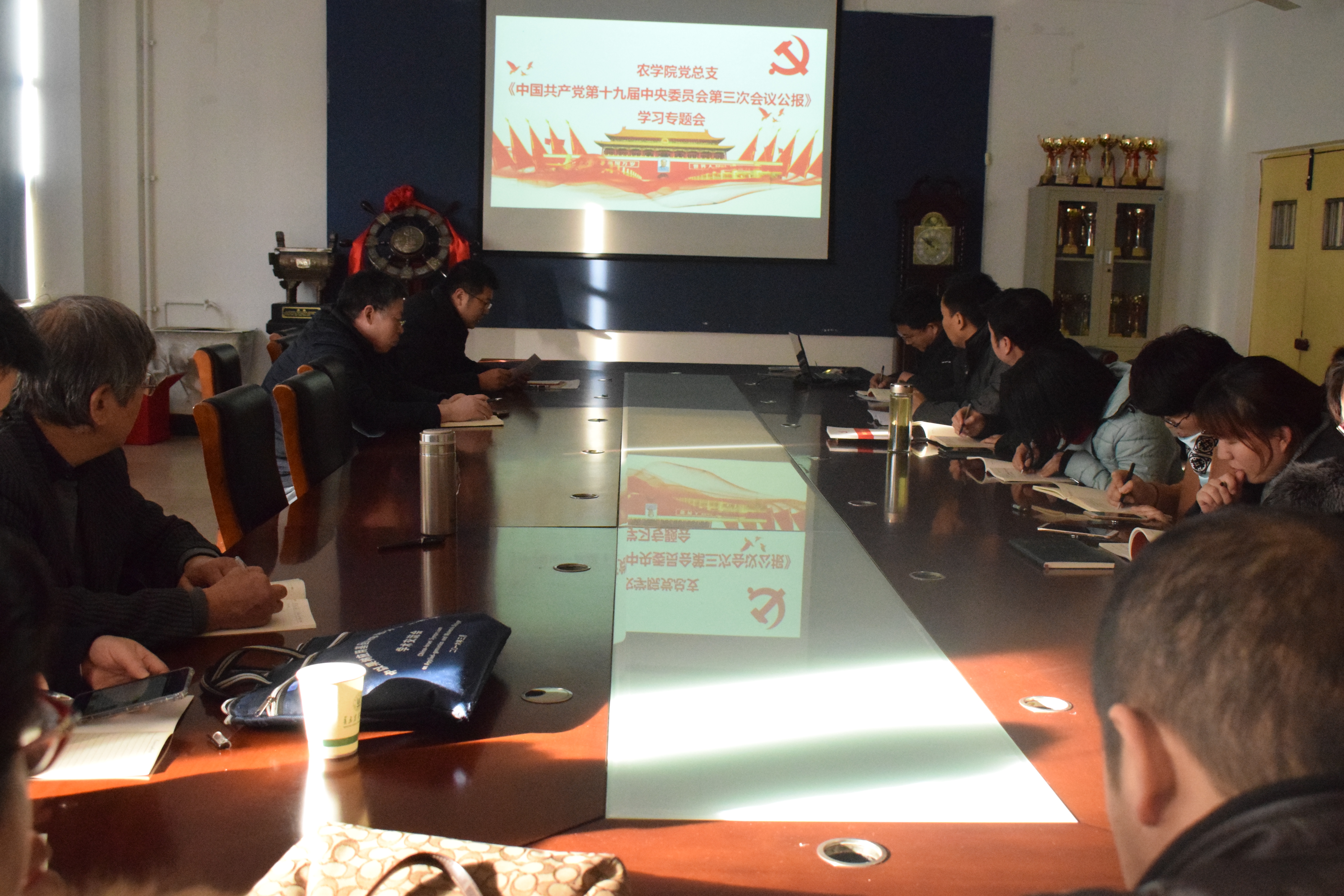 3月1日,beat365在线唯一官网党总支组织全体党员在生物楼会议室召开《中国共产党第十九届中央委员会第三次会议公报》学习专题会,本次会议由beat365在线唯一官网团委书记姜涛主持,beat365在线唯一官网全体党员参加。