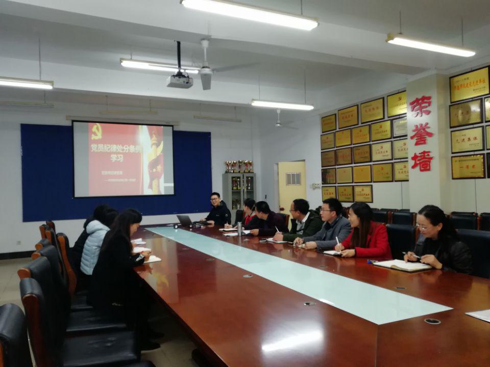 11月22日下午,beat365在线唯一官网教工第一党支部在生物楼N区组织学习《中国共产党纪律处分条例》,教工第一党支部书记师长海主持会议,教工第一党支部全体党员参加。