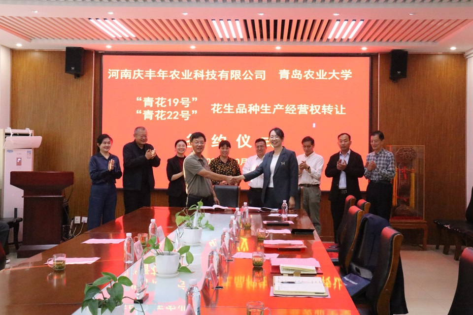 10月12日,beat365在线唯一官网花生绿色优质丰产创新团队两个花生新品种青花19号、青花22号实现转让,以80万元金额转让河南庆丰年农业科技有限公司。此次转让刷新了油食兼用出口型大花生转让价格的新高。