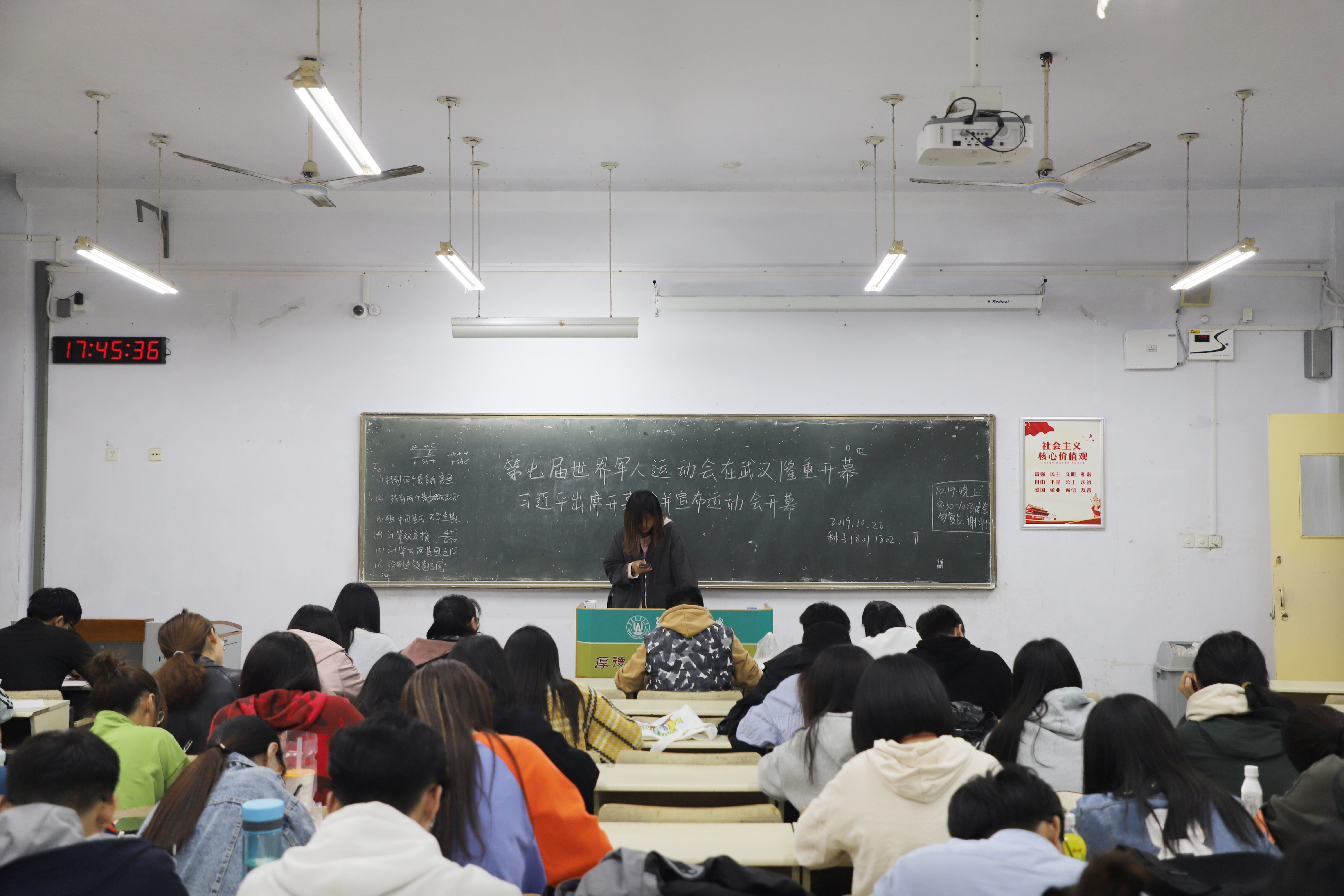 10月20日,beat365在线唯一官网于教学区开展军运会主题团课,旨在让同学们了解世界军人运动会,加强爱国主义教育,提高爱国意识和民族自豪感。2018、2019级全体团员积极参加。