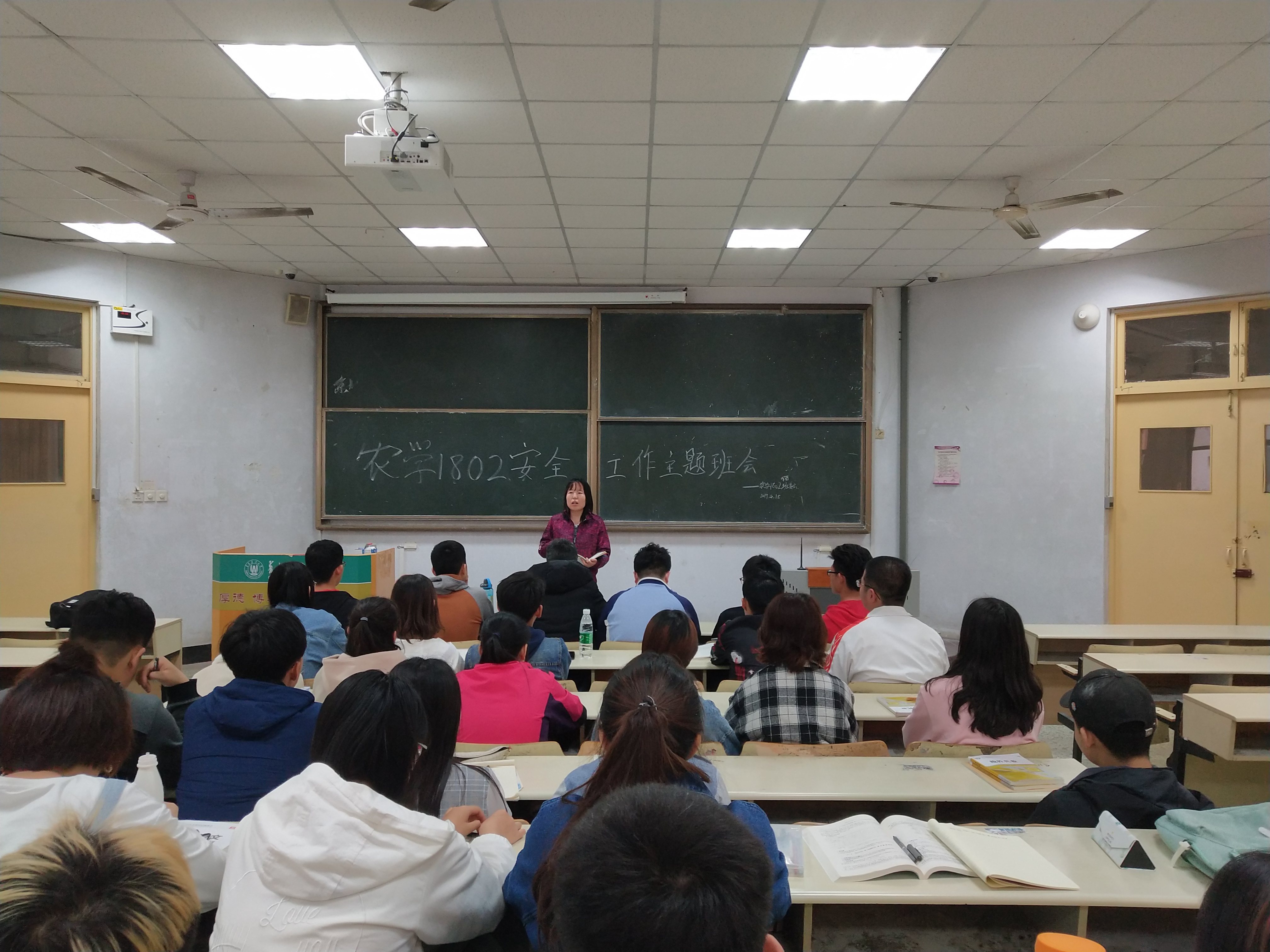 4月18日,农学1802班在教学区B区开展安全工作主题班会,会议由班主任郭卫卫老师主持,全班同学积极参加。
