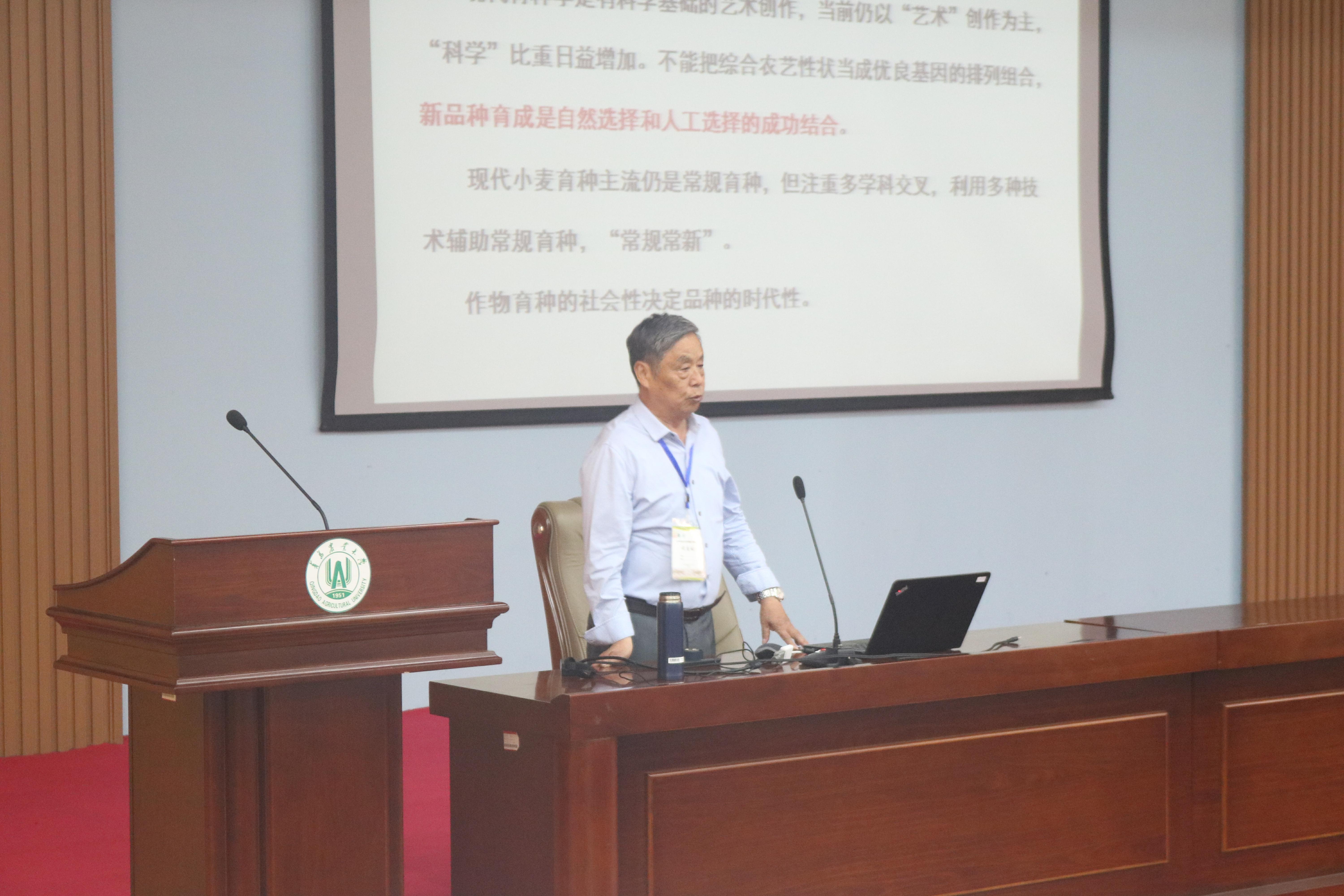 种业是国家战略性、基础性的核心产业,是促进农业长期稳定发展、保障国家粮食安全的根本。作为我国小麦品质育种、高产育种的先锋,赵振东在“小麦育种的思考与实践”报告对小麦育种进行了较为细致的阐述,他从植物育种的定义、从事小麦育种必需的基本概念和高产优质绿色小麦品种选育三大方面指出小麦育种过程中技术的理论依据和具体实践。最后祝愿广大农学学子努力学习新知,并“集成已知,探索未知,实现新突破!”