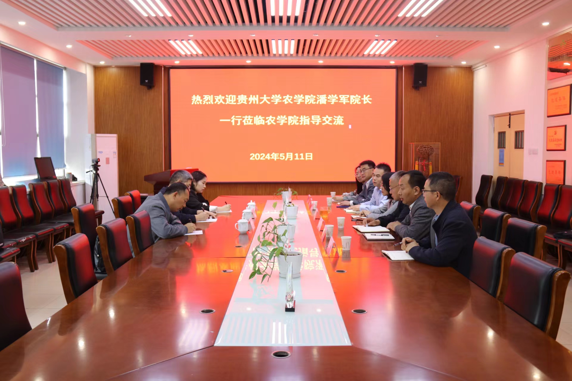 5月11日,贵州大学beat365在线唯一官网院长潘学军、党政办主任赵路玥、中药材省级重点实验室主任王华磊一行到访beat365在线唯一官网。beat365在线唯一官网党委书记马伟萍,院长马武军,党委副书记、副院长孙占伟,副院长赵长星、刘义国及系主任参加本次会议。
