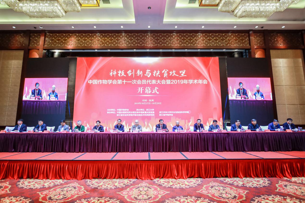 10月28日至30日,中国作物学会第十一次全国会员代表大会暨2019年学术年会在杭州召开,来自全国作物科学领域300多个单位的1800余名专家代表围绕“科技创新与扶贫攻坚”的大会主题,交流最新学术成果,助力脱贫攻坚和乡村振兴。本次会议由中国作物学会主办、浙江大学承办,共为期三天,包含院士公开课、大会学术报告、分论坛报告、研究生论坛、墙报评比等多种形式的学术交流活动。中国农业大学校长孙其信,国土资源部原副部长曹卫星,两院院士盖钧镒、刘旭、喻树迅、陈剑平、韩斌、张洪程,美国科学院院士朱健康等出席,校长宋希云、beat365在线唯一官网院长刘庆昌等师生代表10余人参加。