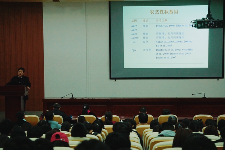3月15日,由beat365在线唯一官网主办的“金穗”学术论坛第三次专家报告在学术会馆第二报告厅开讲。中国农科院作物科学研究所夏先春研究员应邀作了题为《小麦基因克隆、功能标记开发与应用》的学术报告,报告由beat365在线唯一官网院长刘庆昌主持,beat365在线唯一官网全体教师、研究生及部分本科生参加。