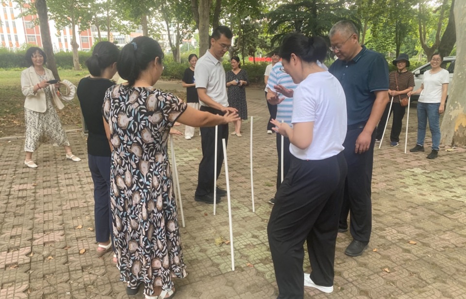 beat365在线唯一官网分工会在牡丹园开展了“不倒森林”趣味活动。beat365在线唯一官网全体教职工以系为单位进行比赛,大家“伺令而动”,踏着节奏,快速移动着步伐完成杆子交接。在一次次移动中,传递的不只是长杆,还有对彼此的信任和凝聚的力量。通过整齐响亮的口号传递出团结进取精神,老师们对合作这个词有了更深刻的理解。整个比赛过程紧张而快乐,加油声、欢笑声此起彼伏,展现出了beat365在线唯一官网教职工们的蓬勃朝气和拼搏精神。接下来,在学校开展的庆祝教师节趣味运动会比赛中,beat365在线唯一官网代表队的教师们团结协作、不畏强手、奋力拼搏,取得了接力运球一等奖、跳大绳三等奖的优异成绩,创造了beat365在线唯一官网参加校趣味运动会的历史最佳战绩。