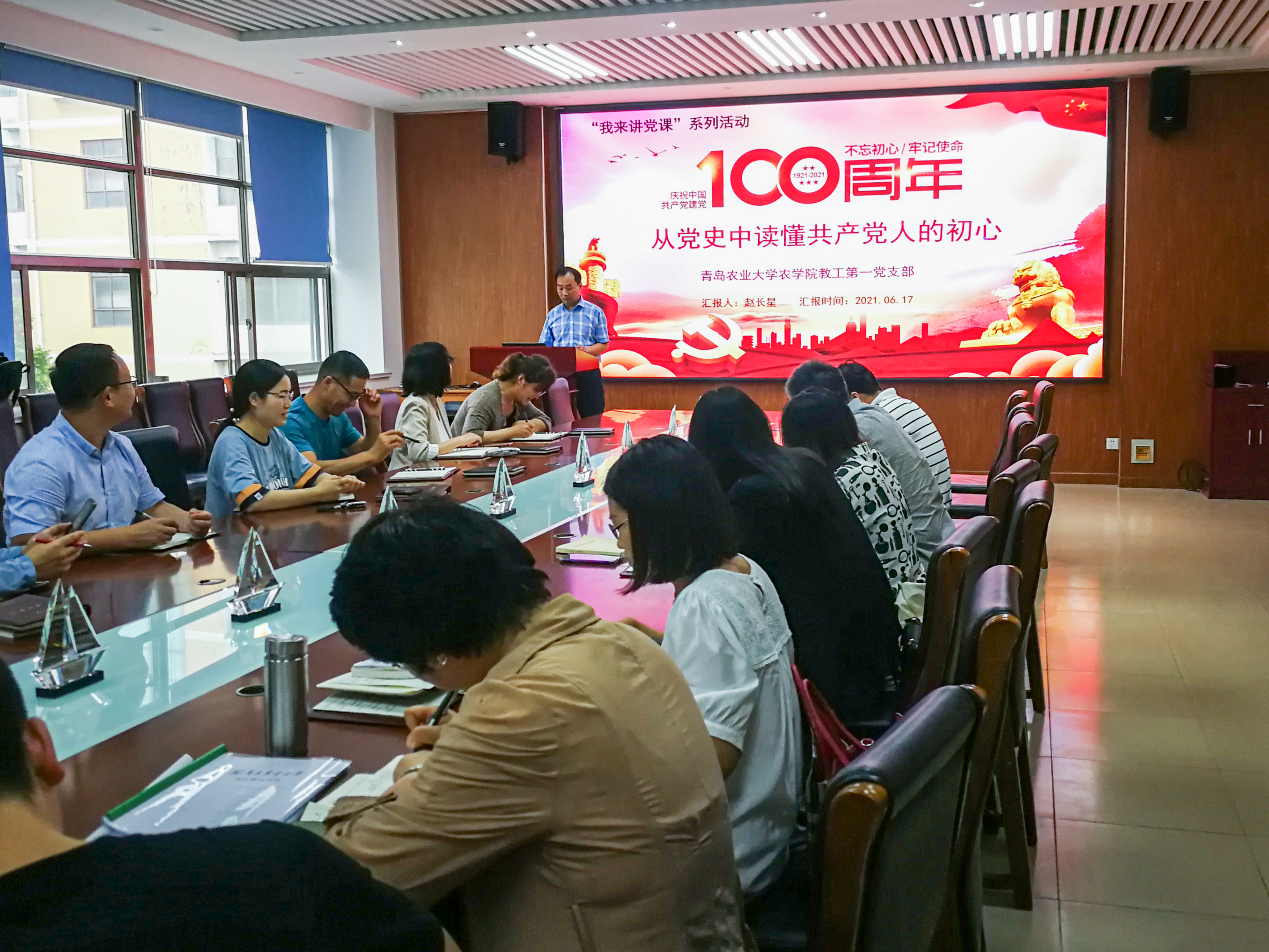 党课从不忘入党初心、牢记党员身份,不忘党的初心、传承红色基因,不忘职责使命、牢记党的嘱托,扛起新使命、开启新征程四个方面进行了深刻阐述。赵长星结合高校教师的职责使命及学校、学院的工作实际,激励党员同志要从党的百年光辉历史中坚定初心使命,勇于担当作为;学好深悟党史国史,鼓足干劲,勤奋工作。此次党课主题鲜明、内涵丰富,全体党员收获颇丰,纷纷表示将以此次党课为契机,切实增强思想自觉和行动自觉,对标新时代高校教师的责任与担当,以立德树人为根本,以强农兴农为己任,把党史学习教育成效转化为工作动力和履职尽责的实效,为全面推进乡村振兴重大战略提供科技支撑。
