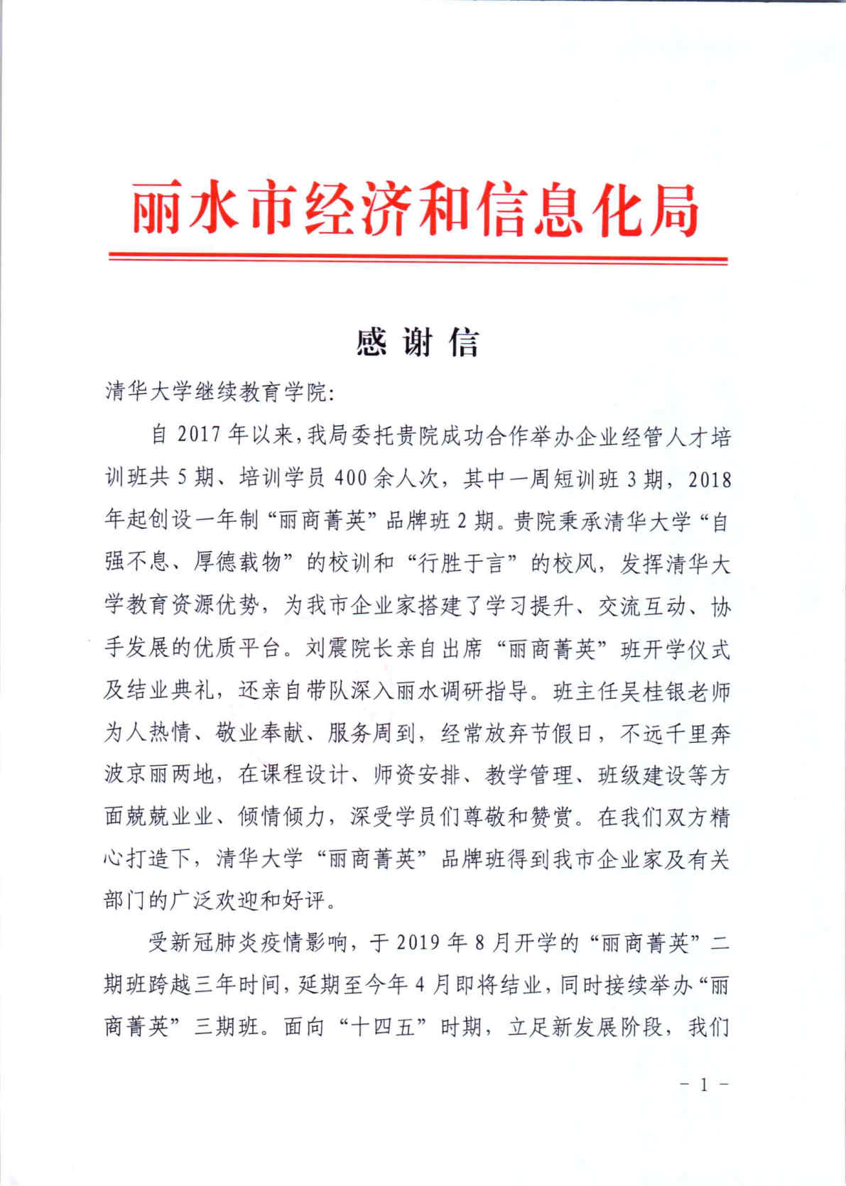 丽水市经济和信息化局致万象城娱乐awc线路万象城娱乐awc线路的感谢信