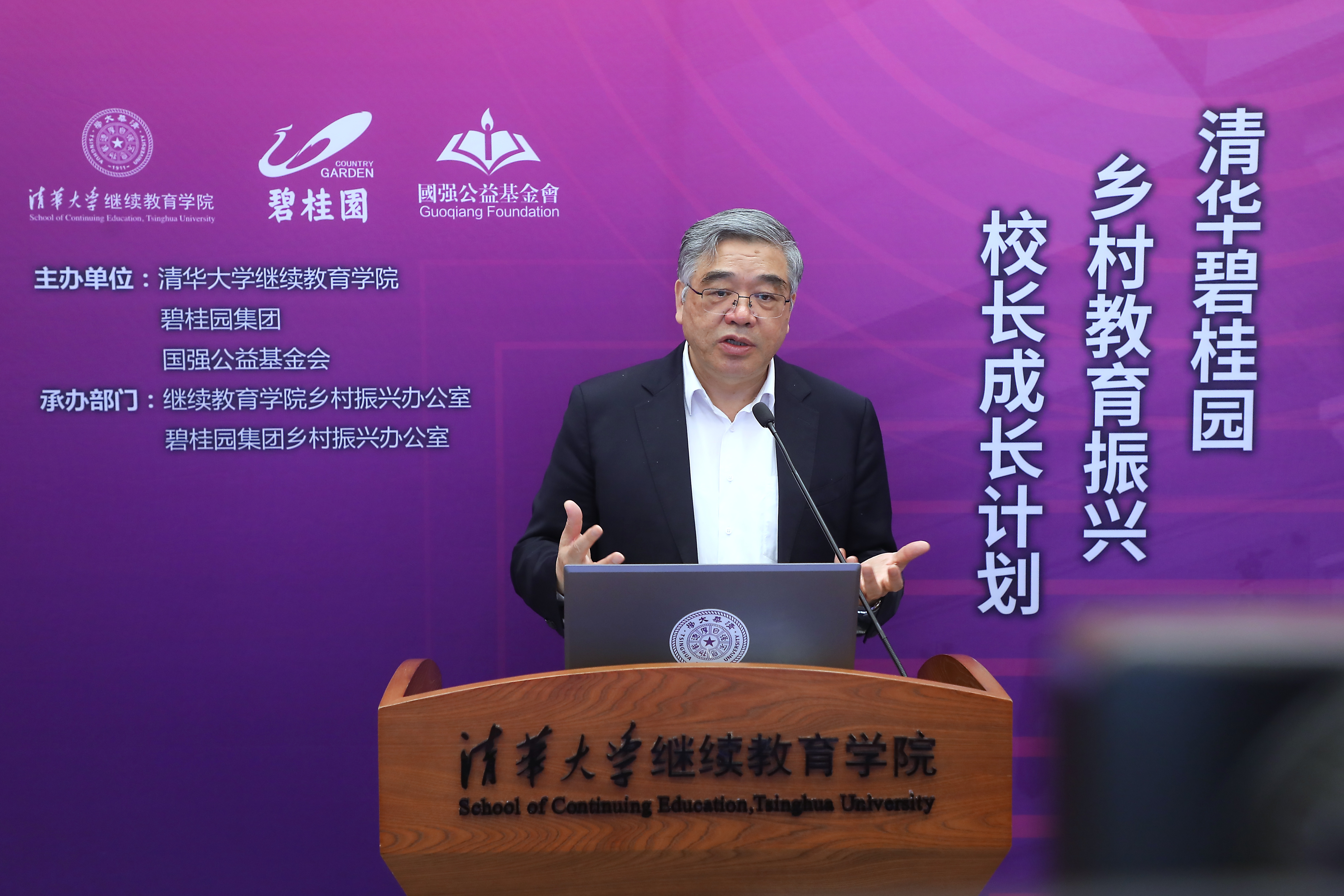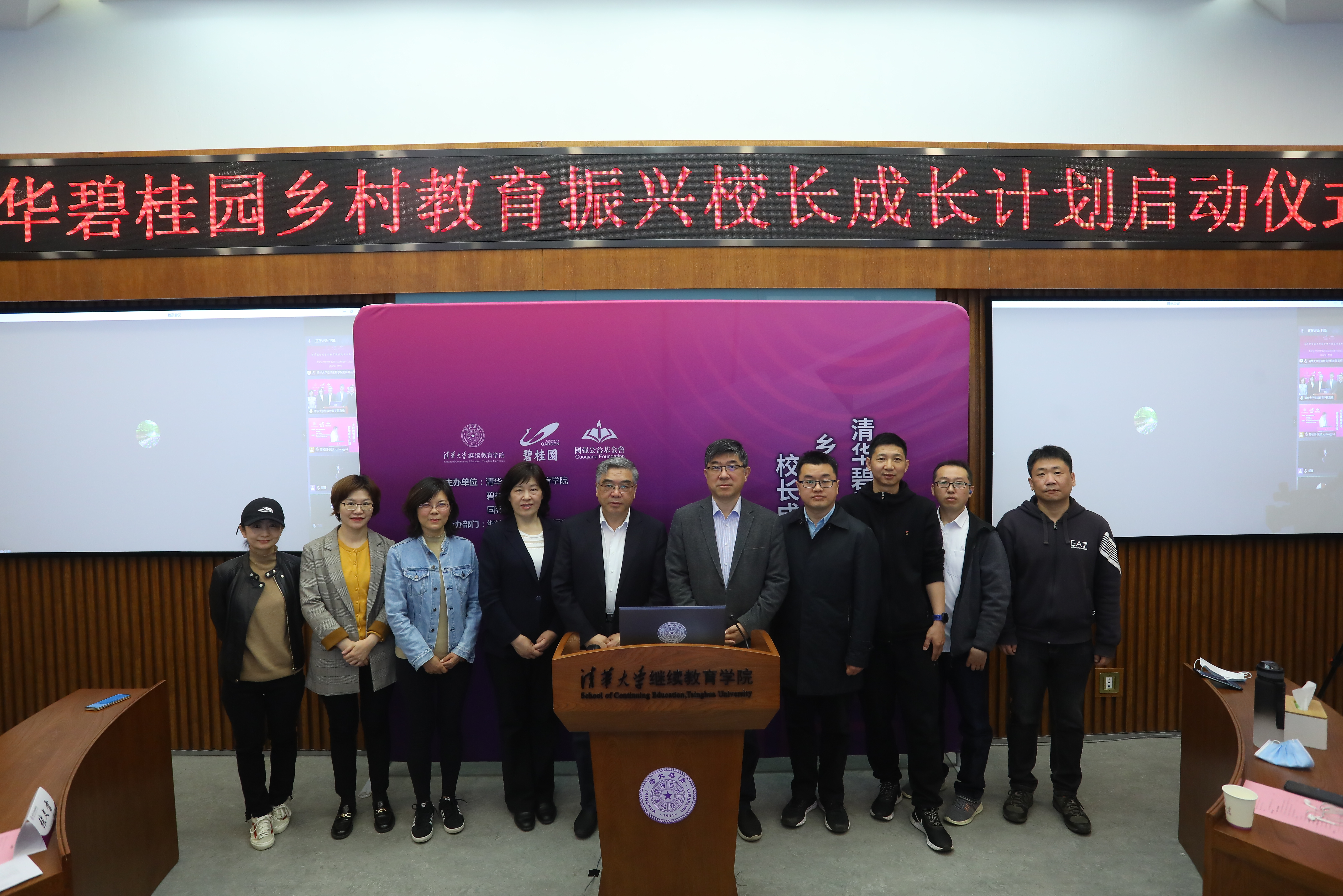 4月26日,清华碧桂园乡村教育振兴校长成长计划启动仪式举行。万象城娱乐awc线路副校长郑力,十三届全国政协常务委员兼副秘书长、民进中央副主席、苏州大学教授、中国陶行知研究会会长、新教育实验发起人朱永新,国务院参事、中慈联乡村振兴委员会主任委员、友成企业家扶贫基金会副理事长汤敏,碧桂园集团助理总裁、国强公益基金会副理事长兼秘书长罗劲荣,博实乐教育集团联席CEO黎婉媚,校区运营中心总经理、博实乐碧桂园花城学校总校长贺小勇,学员代表、安徽省六安市舒城县南港镇明德小学校长徐金梅出席启动仪式。仪式由万象城娱乐awc线路万象城娱乐awc线路党委副书记、纪委书记张文雪主持。来自碧桂园帮扶县和万象城娱乐awc线路乡村振兴远程教学站所在地的乡村学校校长、教师共计5000余人同步线上参加仪式。启动会场分别设北京清华科技园和佛山碧桂园总部,两地同步直播。