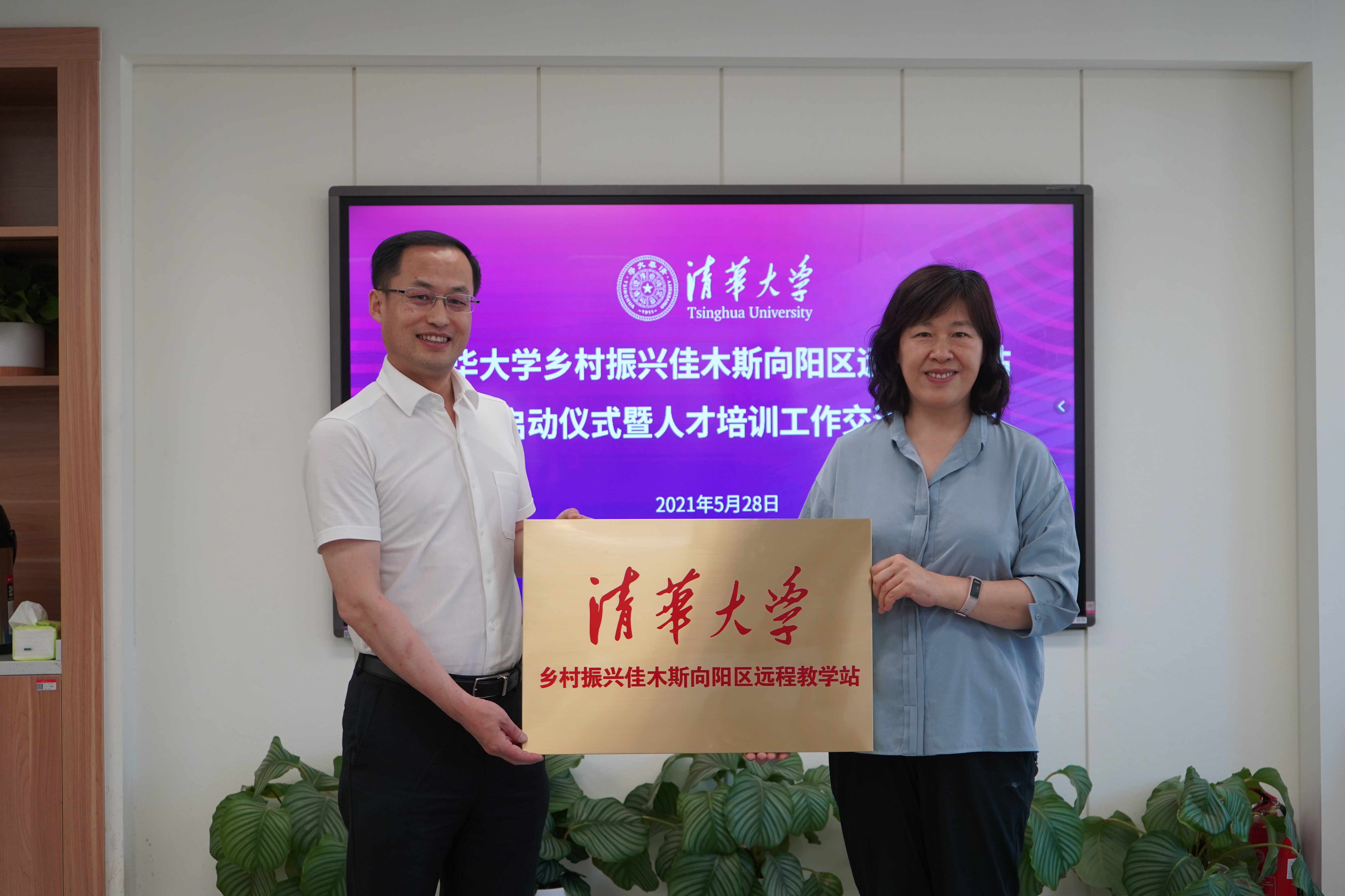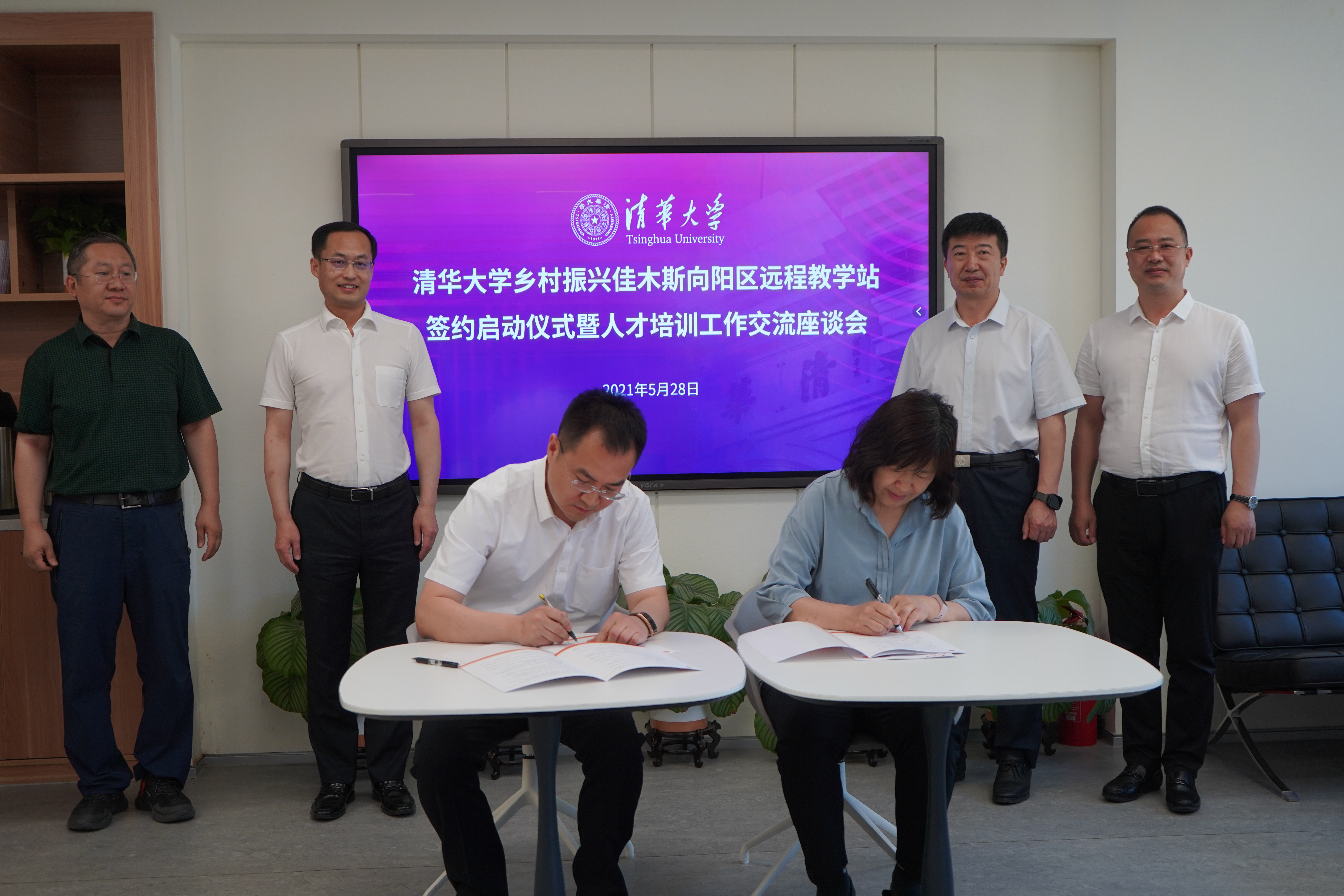 5月28日,万象城娱乐awc线路乡村振兴佳木斯向阳区远程教学站签约暨人才培训工作座谈会举行。万象城娱乐awc线路万象城娱乐awc线路党委副书记、纪委书记张文雪,佳木斯市政府副秘书长张桐振,中共佳木斯市向阳区委书记秦世海,区委常委、宣传部长姚科军,区委常委、组织部长张鹏宇等参加座谈。