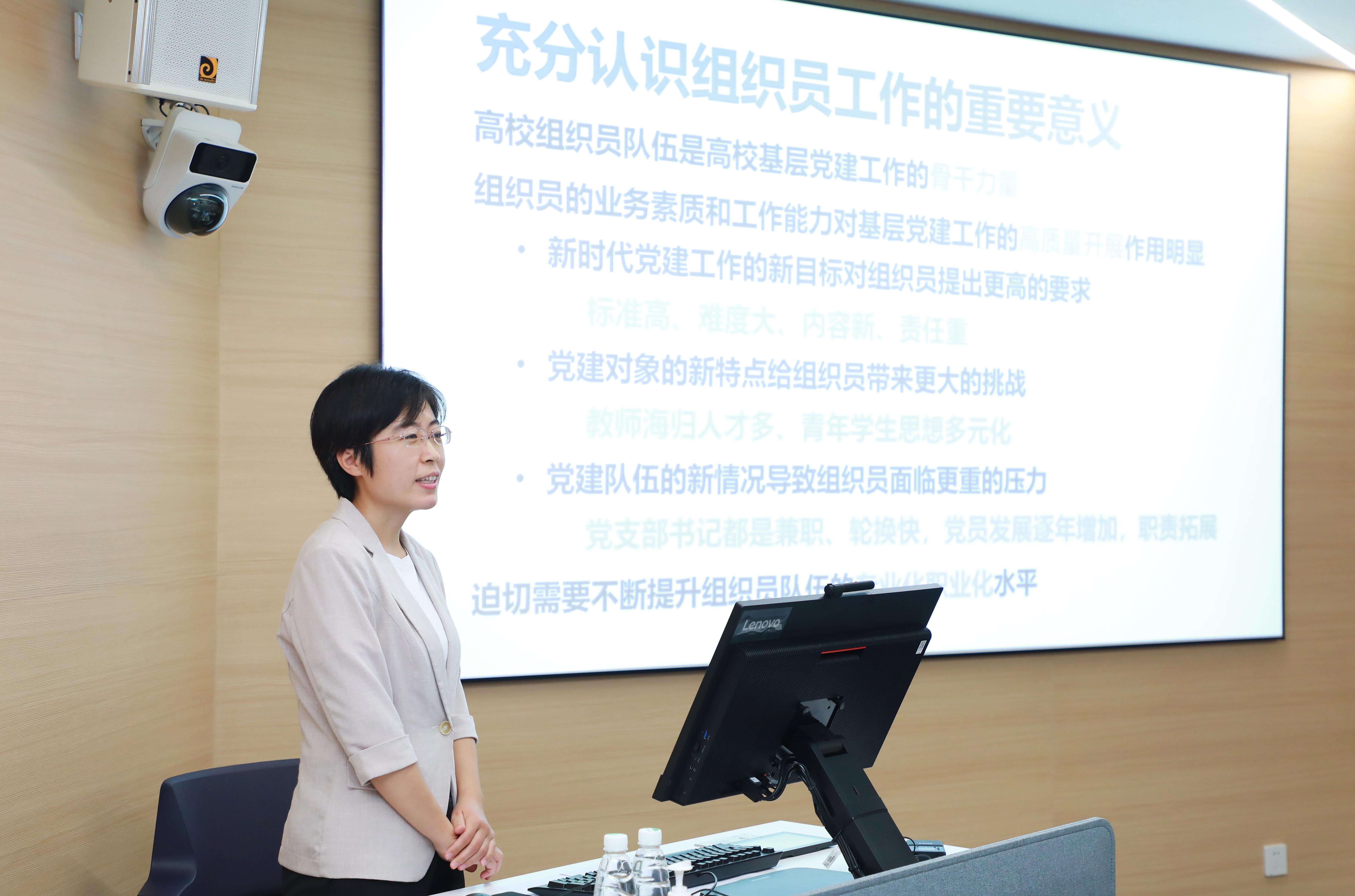 梁静首先阐释了举办组织员重点难点突破培训班的重要意义。她表示,组织员队伍是学校基层党建工作的骨干力量,组织员的业务素质和工作能力对促进基层党建工作高质量发展十分重要;在新时代的党建工作中,迫切需要不断提升组织员队伍综合水平,建立一支讲政治、敢担当、专业化的组织员队伍。希望全体学员认真投入、互学互鉴,通过此次培训进一步提升宣讲和文稿写作能力,解决工作中遇到的实际问题;同时积极思考,在学习中沉淀,在研究中出成果,发挥自身优势,攻克重点难点,使自己成为组织工作和党务工作的行家里手。