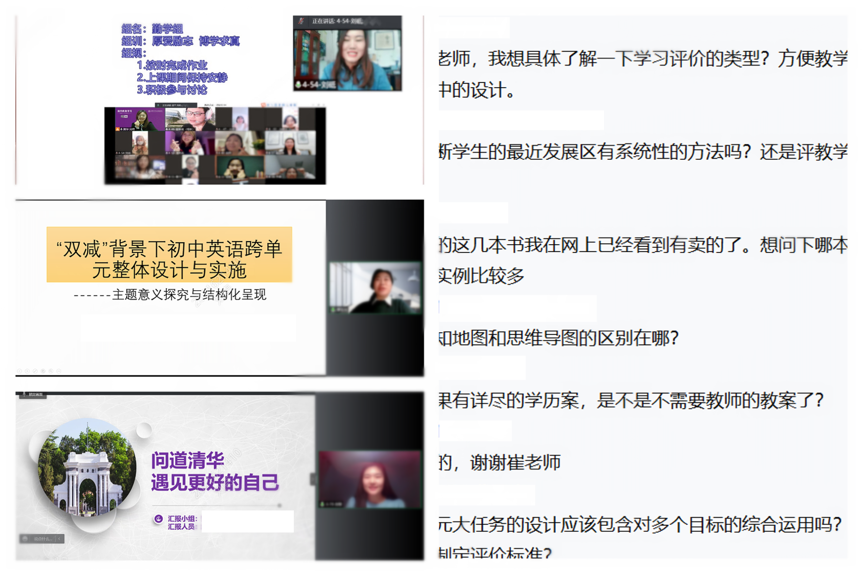 “感谢授课教师全面细致的讲解,还分享了课堂教学语言、作业设计标准等诸多细节性可操作策略,让我明晰了真实、有意义的有效学习。”